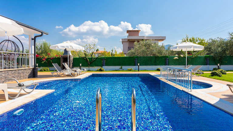 Die Villa Delfin in Ortaca bietet Ihnen eine komfortable Unterkunft mit einem eigenen Pool und einem Garten. Hier können Sie Ihren Urlaub in Ruhe und Privatsphäre genießen. Die Villa ist gut ausgestattet und verfügt über 4 Schlafzimmer, 4 Badezimmer und eine voll ausgestattete Küche. Der Außenpool lädt zum Entspannen ein und die Terrasse bietet einen schönen Blick auf den Pool. Die Villa liegt in der Nähe des Sees Sulungur und des Flusses Dalaman und bietet Ihnen die Möglichkeit, die Natur zu erkunden.