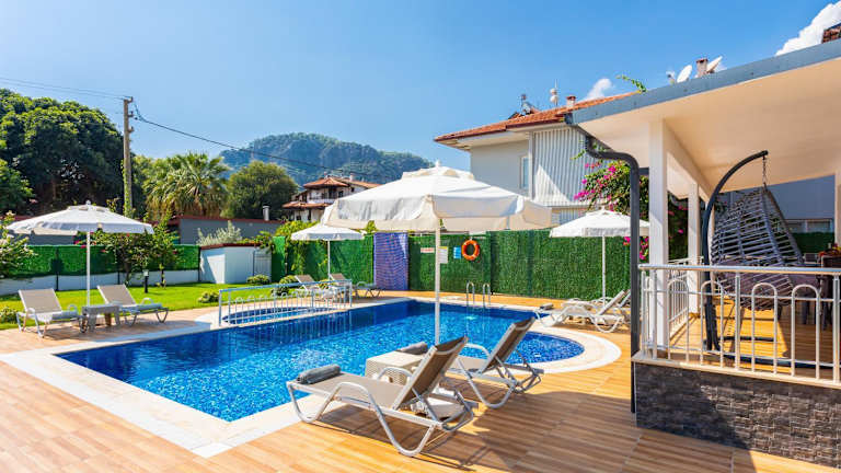 Die Villa Delfin verfügt über einen saisonalen Außenpool, in dem Sie sich an warmen Tagen erfrischen können. Der Garten bietet Ihnen die Möglichkeit, sich im Freien zu entspannen und die Natur zu genießen. Darüber hinaus gibt es in der Umgebung verschiedene Aktivitäten, die Sie unternehmen können, wie z.B. Bootsfahrten auf dem See Sulungur oder Wanderungen entlang des Flusses Dalaman.