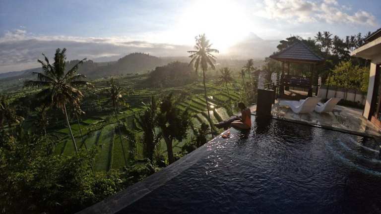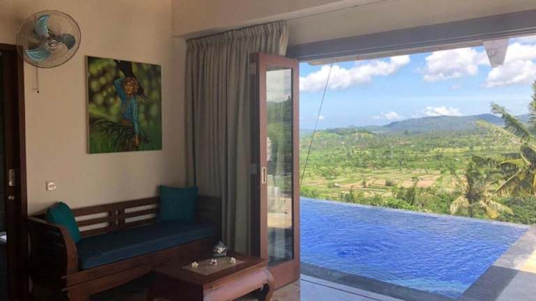 Die Villa di Bias liegt in Tirtagangga und bietet eine idyllische Lage inmitten der Natur. Die Gegend ist bekannt für ihren Wasserpalast Tirta Gangga, der nur 5 km entfernt ist und einen Besuch wert ist. Die Umgebung lädt auch zum Wandern ein, und das Hotel bietet eine Autovermietung, um die Region zu erkunden. Der internationale Flughafen Denpasar ist mit einer Entfernung von 82 km gut erreichbar.