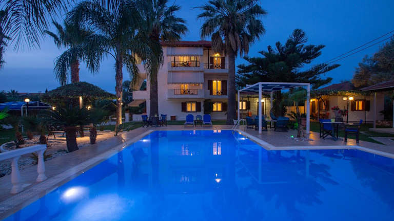 Das Hotel Villa Dimitris verfügt über einen Swimmingpool, der von einem schönen Palmengarten umgeben ist. Hier können Sie sich entspannen und erfrischen. Der nahegelegene Strand von Agios Ioannis bietet zudem die Möglichkeit zum Sonnenbaden und Wassersport. Für Ausflüge in die Umgebung stehen kostenlose Parkplätze am Hotel zur Verfügung.