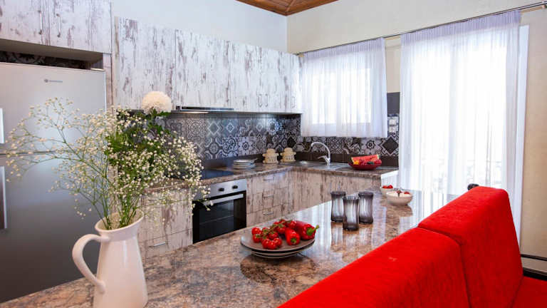 Die Studios im Villa Dimitris sind geschmackvoll eingerichtet und bieten eine komfortable Unterkunft. Jedes Studio verfügt über schmiedeeiserne Betten und einen Balkon mit Blick auf den Pool und den Garten. Zur Ausstattung gehören eine gut ausgestattete Küchenzeile, ein TV, Klimaanlage und ein eigenes Bad mit Dusche. Kostenloses WLAN steht in allen Bereichen des Hotels zur Verfügung.