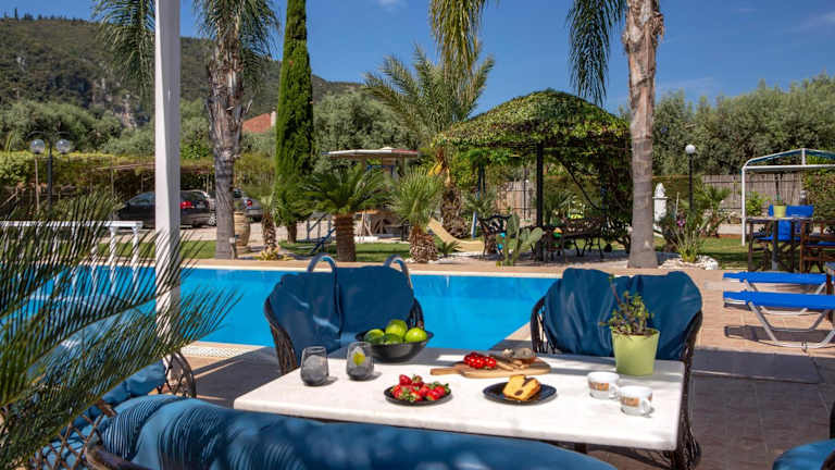 Das Hotel Villa Dimitris Apartments & Bungalows by Imagine Lefkada in Lefkada ist der perfekte Ort für einen erholsamen Urlaub. Die geschmackvoll eingerichteten Studios bieten einen komfortablen Rückzugsort mit Blick auf den Pool und den Garten. Die Nähe zum Strand und die kostenlose Nutzung des WLANs sind weitere Pluspunkte. Genießen Sie Ihren Aufenthalt in dieser idyllischen Umgebung und erkunden Sie die Restaurants und Geschäfte in der Nähe. Das Stadtzentrum von Lefkada ist ebenfalls leicht zu erreichen.