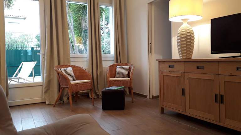 Die VILLA DU GOLFE T3 en bord de plage ist eine Ferienwohnung, die direkt am Strand liegt und einen Gartenblick bietet. Die Unterkunft verfügt über einen kostenlosen Privatparkplatz und bietet WLAN-Zugang.