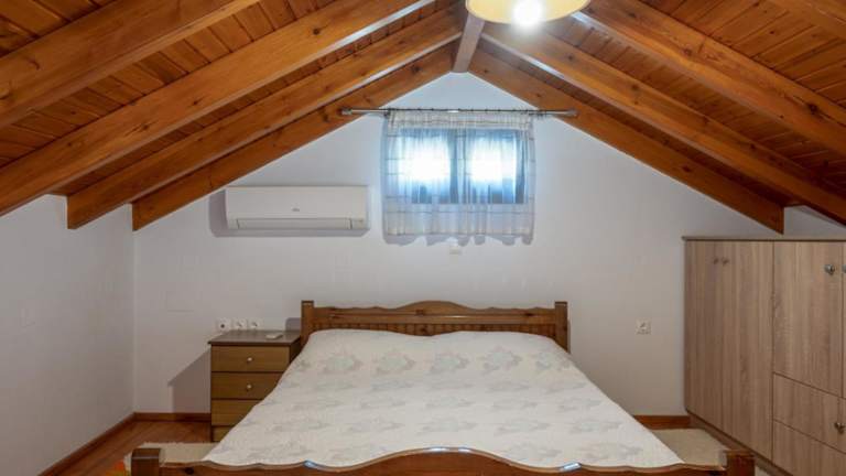 Das Ferienhaus bietet 1 Schlafzimmer, ein Wohnzimmer sowie eine gut ausgestattete Küche mit Kühlschrank und Ofen. Handtücher und Bettwäsche sind ebenfalls im Angebot.