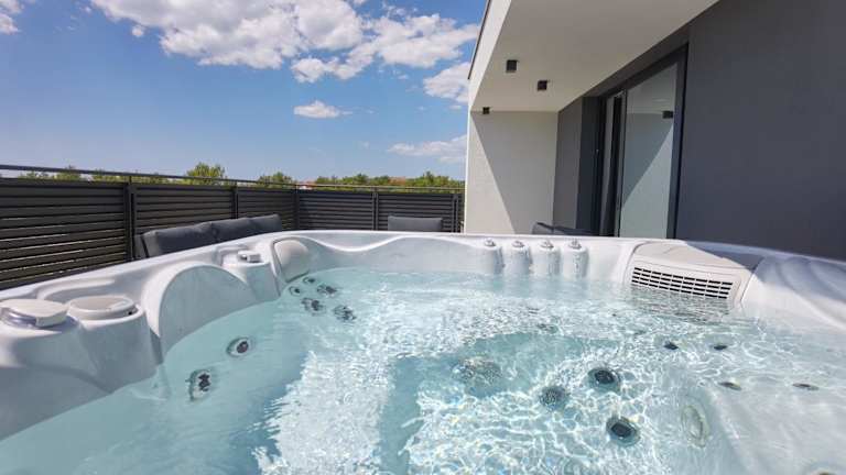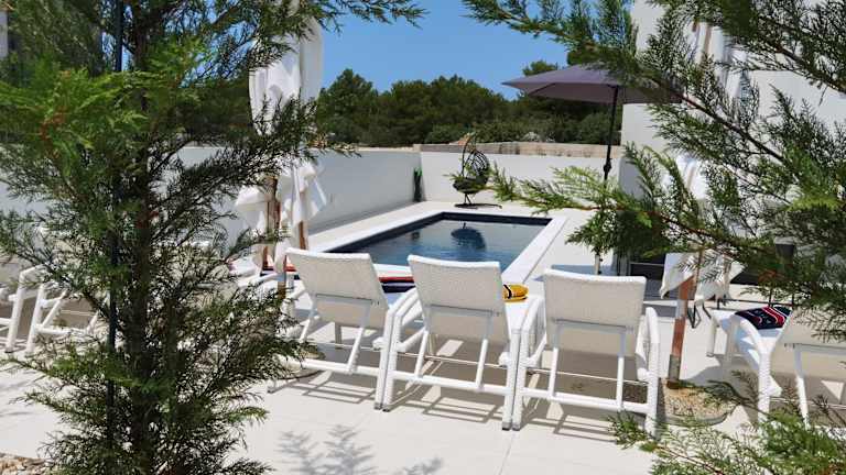 Die Villa umfasst fünf Schlafzimmer, ein Wohnzimmer und eine voll ausgestattete Küche mit Kühlschrank und Kaffeemaschine. Darüber hinaus stehen den Gästen sechs Badezimmer mit Bidet und Dusche zur Verfügung. Handtücher und Bettwäsche werden bereitgestellt.