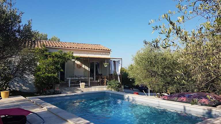 Die Villa en Provence piscine au calme entre Arles Nîmes Avignon bietet eine ruhige Übernachtungsmöglichkeit mit einer Terrasse und Grillmöglichkeiten. Es handelt sich um eine klimatisierte Villa mit kostenlosem WLAN und Poolblick.