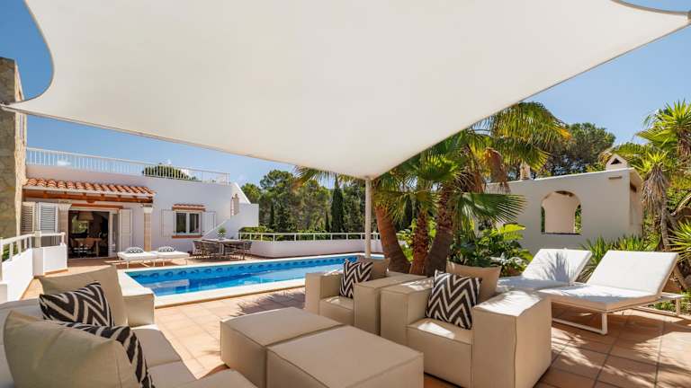 VILLA ES VEDRÁ by Migjorn Ibiza Suites & Spa bietet Übernachtungsmöglichkeiten in einer klimatisierten Villa, die mit einem Außenpool, einem Garten, einer Terrasse und kostenlosem WLAN ausgestattet ist. Zur Verfügung steht ein kostenloser Privatparkplatz.