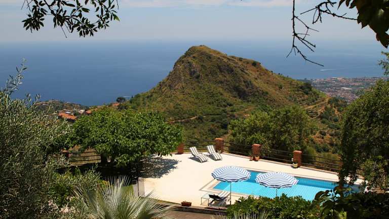 Die Villa Etna Mare ist ein traumhaftes Ferienhaus in Taormina, das Ihnen eine ruhige Lage und eine atemberaubende Aussicht auf das Meer, den Ätna und Taormina bietet. Hier können Sie in einer klimatisierten Unterkunft mit kostenfreiem WLAN entspannen und den saisonalen Außenpool und den Garten genießen. Das Ferienhaus verfügt über eine voll ausgestattete Küche, ein geräumiges Wohnzimmer, 3 Schlafzimmer und 2 Badezimmer. Handtücher und Bettwäsche werden gestellt. Auf der Terrasse können Sie den Blick auf die Umgebung genießen und den Grill nutzen. Die Seilbahn Taormina - Oberstation und der Bahnhof Taormina - Giardini Naxos sind nur eine kurze Autofahrt entfernt. Der Flughafen Catania ist ebenfalls gut erreichbar.