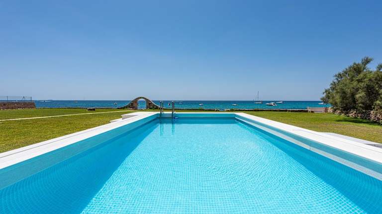 Die Unterkunft bietet Übernachtungsmöglichkeiten in einem ruhigen Ambiente mit einem eigenen Strandbereich, einem Außenpool sowie einer Terrasse und einem Garten. WLAN steht kostenfrei zur Verfügung.