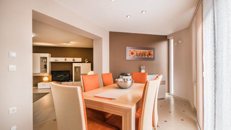 Es stehen ein Essbereich sowie eine voll ausgestattete Küche zur Verfügung, um eine Selbstversorgung zu ermöglichen. Zusätzliche Verpflegungsmöglichkeiten sind in der Umgebung zu finden.