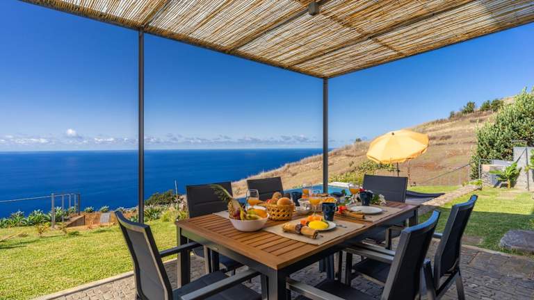 Die Villa Flora - Nature & Tranquility - Heated pool optional ist ein wunderschönes Ferienhaus mit Blick auf die Berge. Hier können Sie sich in Ruhe entspannen und die Natur genießen. Die Villa verfügt über einen eigenen Pool, einen Garten und kostenfreies WLAN. Die Unterkunft bietet 3 Schlafzimmer, 2 Badezimmer, einen Essbereich und eine voll ausgestattete Küche. Genießen Sie die Terrasse mit Meerblick und nutzen Sie den ganzjährig geöffneten Außenpool. Die Villa ist ideal gelegen, um die natürlichen Pools von Porto Moniz zu besuchen und Aktivitäten wie Wandern und Angeln zu unternehmen.