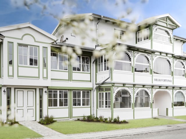 Die Villa Fortuna im Ostseebad Sellin bietet Ihnen eine komfortable Unterkunft mit kostenfreiem WLAN, einem Garten und einer Terrasse. Die Unterkünfte verfügen über einen gemütlichen Sitzbereich, Sat-TV und ein eigenes Badezimmer. In der voll ausgestatteten Küche können Sie Ihre eigenen Mahlzeiten zubereiten. Die Lage des Hotels ist ideal, da der Hundestrand Sellin und der Strand Ostseebad Sellin nur einen kurzen Spaziergang entfernt sind. Entdecken Sie die malerische Umgebung und besuchen Sie den Strand Sellin South Beach und das Freilichttheater Ralswiek. Der Flughafen Bornholm ist ebenfalls gut erreichbar.