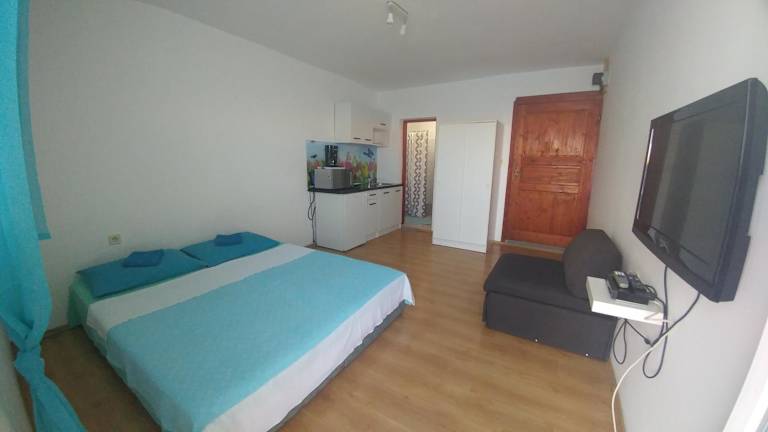 Die klimatisierten Unterkünfte in der Villa Franko bieten Ihnen allen Komfort, den Sie für einen angenehmen Aufenthalt benötigen. Genießen Sie den Gartenblick von Ihrer Terrasse oder Ihrem Balkon aus. Die Unterkünfte verfügen über einen gemütlichen Sitzbereich, Kabel-TV und eine gut ausgestattete Küche mit Kühlschrank, Mikrowelle, Kochfeld, Kaffeemaschine und Wasserkocher.
