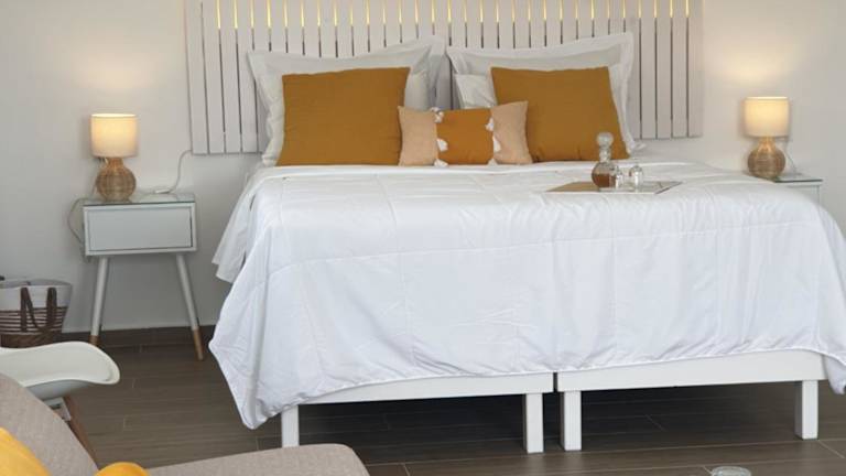 Die Zimmer im Galaxa Mansion sind hell und einfach gestaltet, mit einer Kombination aus Weiß- und Blautönen. Jedes Zimmer verfügt über einen Balkon, von dem aus Sie entweder einen Blick auf das Meer oder auf die Berge haben. Zur Ausstattung gehören eine Klimaanlage, ein TV mit Pay-per-View und ein Minikühlschrank. WLAN ist in den öffentlichen Bereichen kostenlos verfügbar.