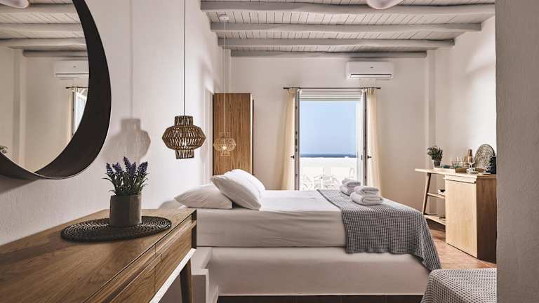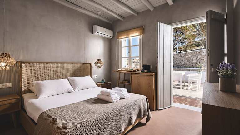 Die Zimmer in der Villa Gallis sind komfortabel und gemütlich eingerichtet. Jedes Zimmer verfügt über eine Terrasse oder einen Balkon mit einem atemberaubenden Blick auf die Ägäis. Die klimatisierten Zimmer sind mit Einbaubetten, Holzbalkendecken, Flachbild-Sat-TV, Safe und Kühlschrank ausgestattet. Die Badezimmer sind modern und verfügen über eine Dusche, einen Haartrockner und kostenlose Pflegeprodukte aus natürlichen Inhaltsstoffen.
