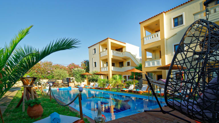 Die Unterkunft befindet sich in Kolimvárion, etwa 400 Meter vom Strand Rapaniana entfernt. Platanias-Platz ist 12 km von der Unterkunft entfernt. Der Flughafen Chania liegt in einer Entfernung von 35 km. Es wird ein kostenpflichtiger Flughafentransfer angeboten.