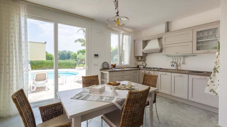 Casina Greca by RivedelSalento ist ein Ferienhaus, das eine Veranda sowie einen Patio umfasst. Zur Ausstattung gehören ein eigener Pool, kostenloses WLAN und ein kostenloser Privatparkplatz. Die Unterkunft ist klimatisiert.