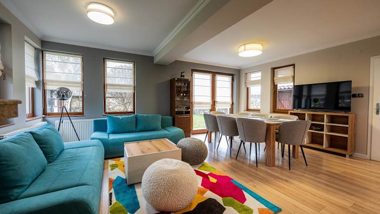 Die Villa Green Magic bietet eine Unterkunft mit Gartenblick und verfügt über Annehmlichkeiten wie eine Terrasse und einen Balkon. Die Unterkunft ist in einem ruhigen, ländlichen Umfeld gelegen und bietet Gästen den Zugang zu einem Garten und kostenlosen Privatparkplätzen.
