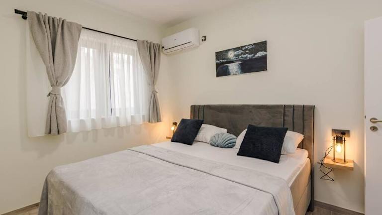 Die Villa ist klimatisiert und verfügt über drei Schlafzimmer und zwei Badezimmer. Zur Ausstattung gehören Bettwäsche, Handtücher, ein Flachbild-TV mit Satellitenempfang sowie ein Essbereich. Die vollständig ausgestattete Küche ermöglicht eine eigenständige Verpflegung. Eine Terrasse mit Meerblick sowie ein Whirlpool ergänzen das Angebot. Die Zimmer sind schallisoliert und sorgen so für eine ruhige Atmosphäre.