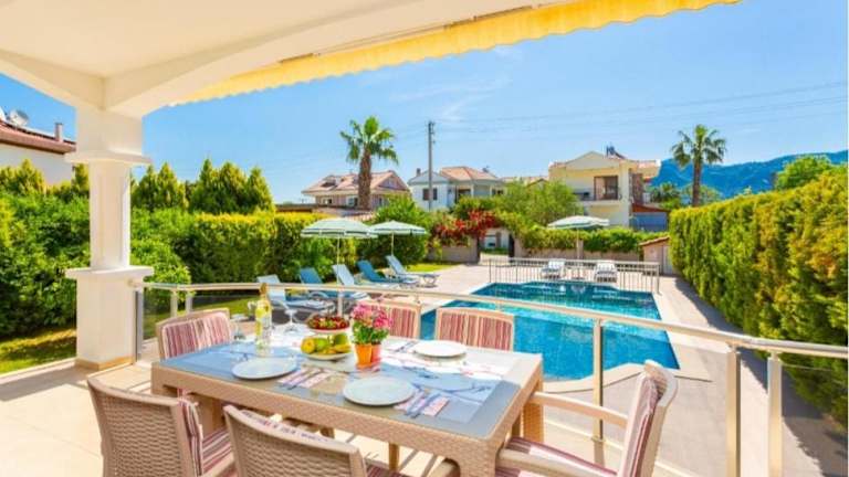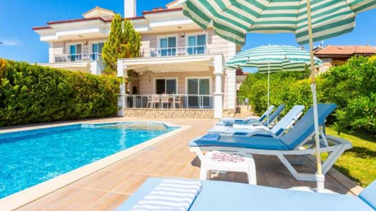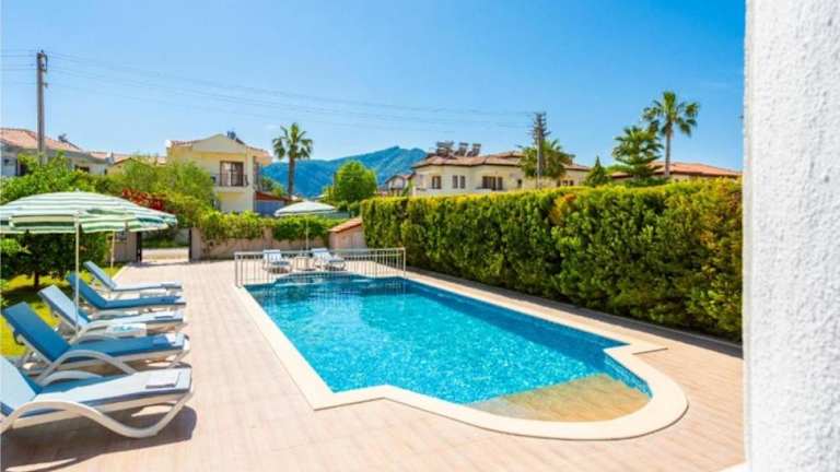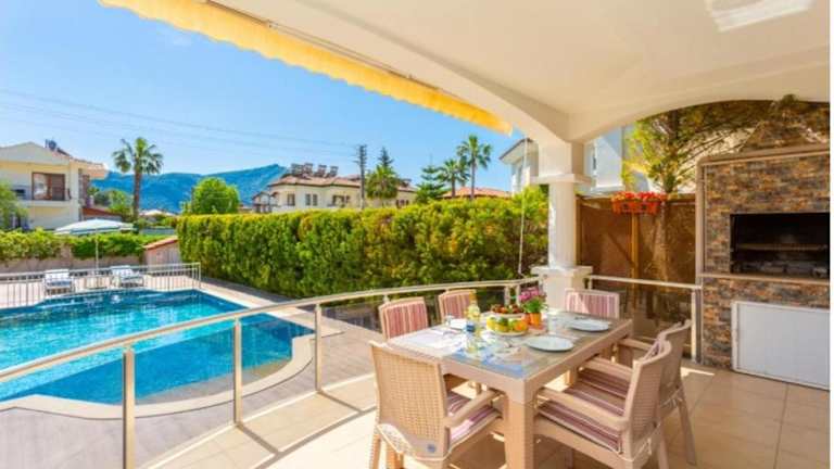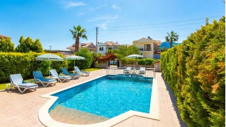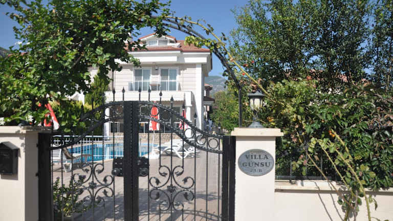 Die Villa Günsu in Ortaca ist eine ideale Unterkunft für einen komfortablen und entspannten Aufenthalt. Die Villa bietet einen saisonalen Außenpool, einen schönen Garten und kostenfreies WLAN. Die Unterkunft verfügt über klimatisierte Zimmer mit Balkon, 5 Schlafzimmer, 2 Badezimmer, einen Essbereich und eine voll ausgestattete Küche. Genießen Sie die Terrasse mit Bergblick und nutzen Sie den Grill für gemütliche Abende. Die Villa Günsu liegt zentral in Ortaca und in der Nähe von Sehenswürdigkeiten wie dem See Sulungur und dem Fluss Dalaman. Der Flughafen Dalaman ist ebenfalls leicht erreichbar.