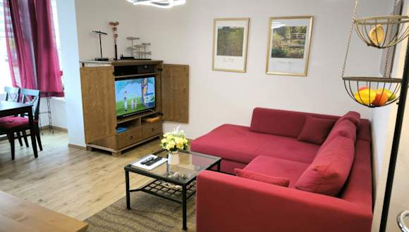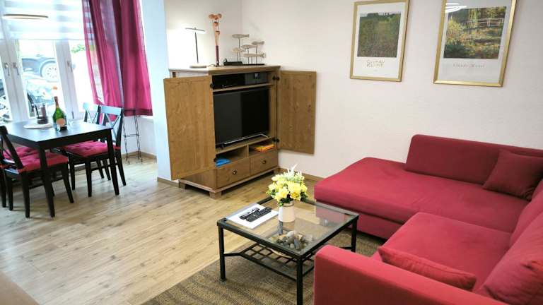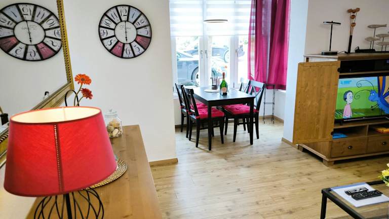 Die Villa Heimkehr Whg. 2 ist eine Ferienwohnung, die ideal für einen entspannten Aufenthalt geeignet ist. Sie bietet einen Privatparkplatz und kostenfreies WLAN für die Gäste. Junggesellenabschiede und ähnliche Feierlichkeiten sind in dieser Unterkunft nicht gestattet. Das Mindestalter für den Check-in beträgt 18 Jahre. Haustiere sind erlaubt, wobei möglicherweise Gebühren anfallen.