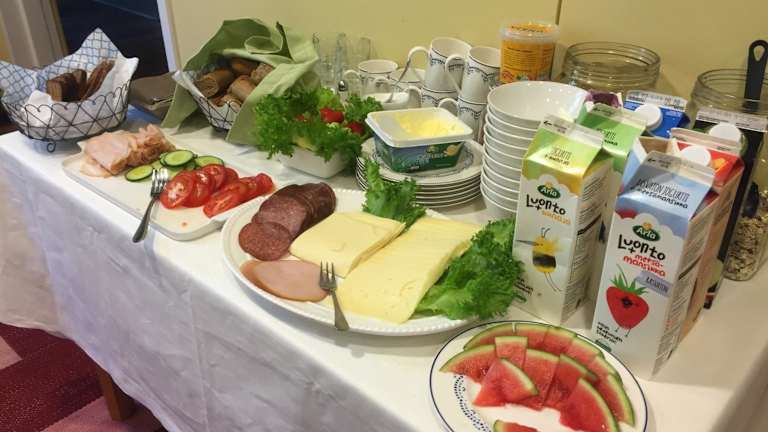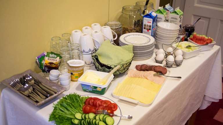 In der Villa Högbo können Sie Ihre Mahlzeiten in der Gemeinschaftsküche zubereiten und den Tag mit einem köstlichen selbstgemachten Essen beginnen.