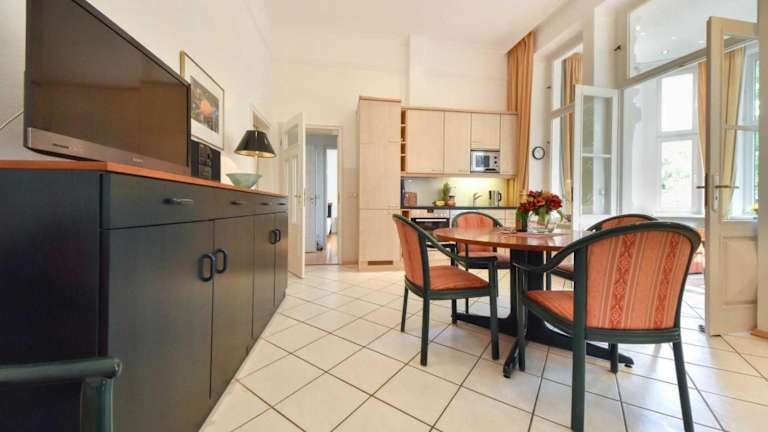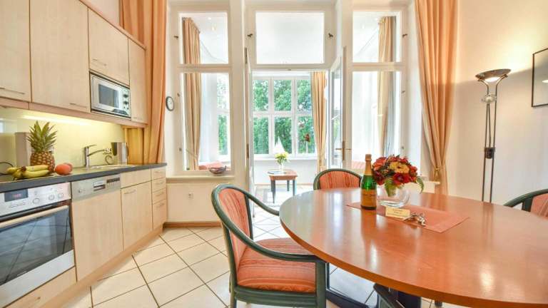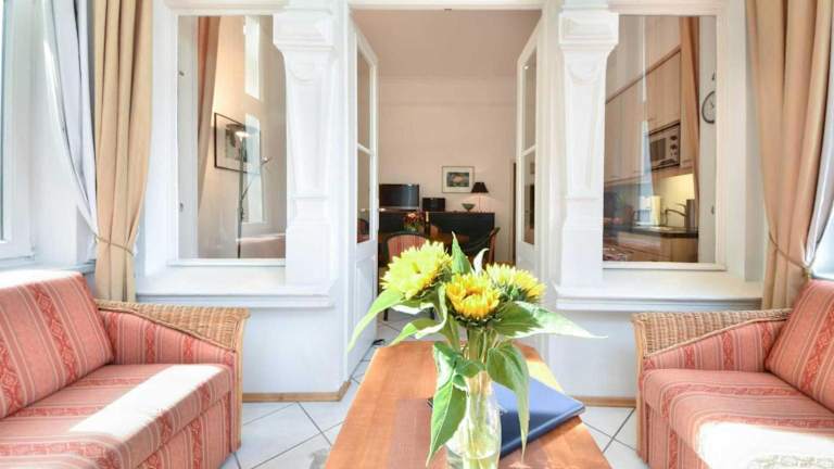 Heringsdorf, 1,4 km vom Strand in Heringsdorf, 8,3 km vom Baltic Park Molo Aquapark und 10 km vom Zdrojowy-Park entfernt. In der Nähe befindet sich auch die Seebrücke Ahlbeck, die 1,4 km entfernt ist. Der Bahnhof Swinemünde liegt 13 km entfernt und der nächstgelegene Flughafen ist der Flughafen Heringsdorf, ebenfalls 13 km von der Unterkunft.