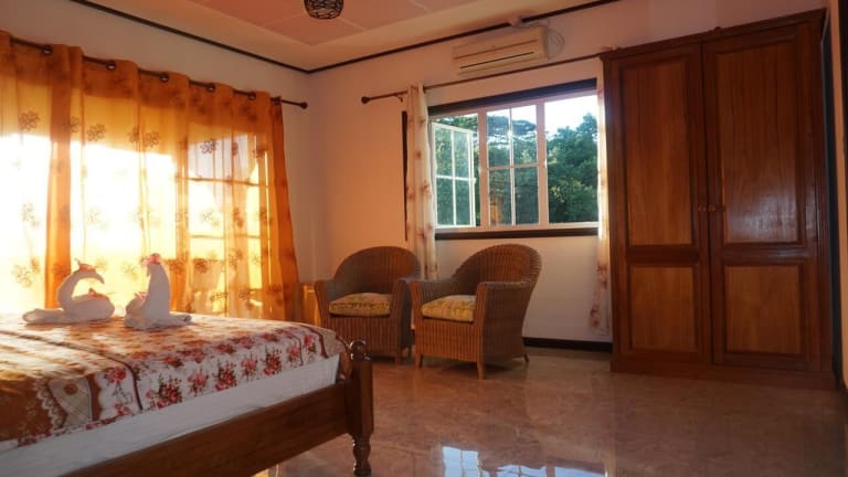 Das Hotel Villa Hortensia auf La Digue ist eine ideale Unterkunft für Reisende, die eine ruhige und entspannte Atmosphäre inmitten der tropischen Umgebung suchen. Die geräumigen und klimatisierten Zimmer bieten Komfort und Privatsphäre, während die Gemeinschaftsküche den Gästen die Möglichkeit bietet, ihre eigenen Mahlzeiten zuzubereiten. Die Lage des Hotels, nur 5 Fahrminuten vom Bootsanleger La Digue entfernt, macht es zu einem idealen Ausgangspunkt für Erkundungstouren auf der Insel.