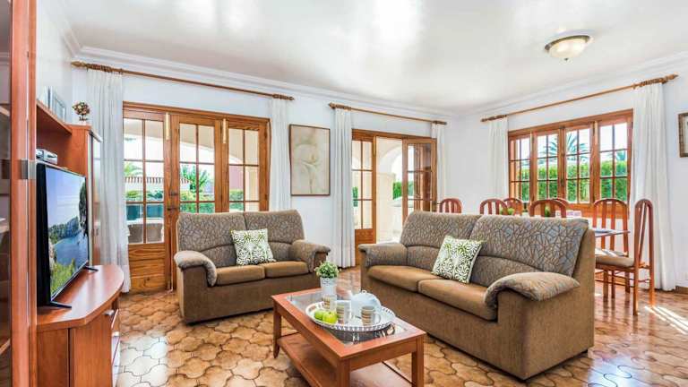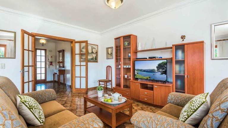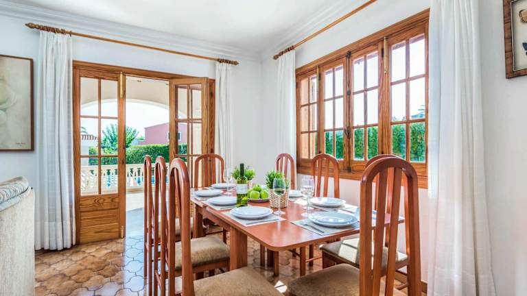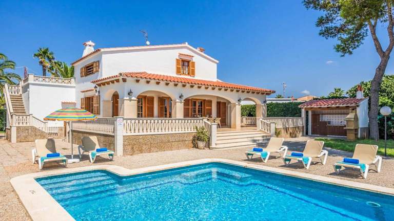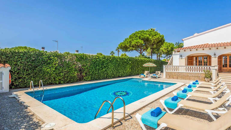 Die Unterkunft befindet sich in Son Carrio, nur 500 m vom Strand Cala Santandria entfernt. Weitere Strände in der Nähe sind Cala Blanca, der 1,3 km entfernt liegt, und Platja Gran, der 2,9 km weit ist. Der Flughafen Menorca ist 48 km entfernt.
