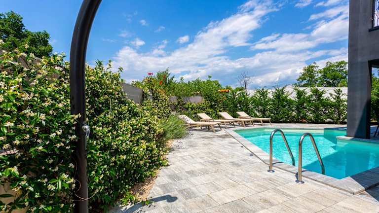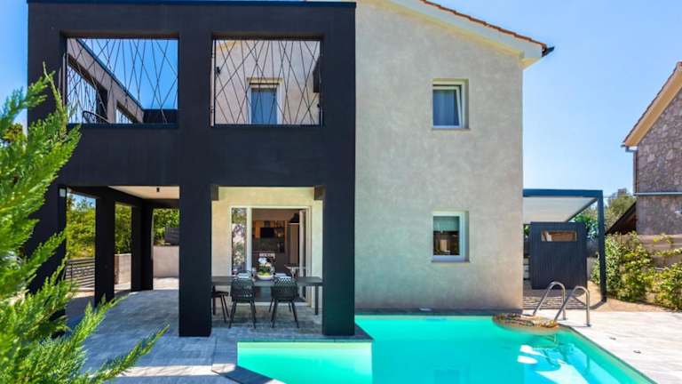 Die Unterkunft Villa Jazz - Island Krk SPA Oasis bietet eine Terrasse mit Blick auf das Meer und die Berge sowie eine Vielzahl von Annehmlichkeiten. Dazu gehören ein ganzjährig geöffneter Außenpool, eine Sauna und ein Whirlpool. Des Weiteren steht den Gästen ein eigener Pool und ein Garten zur Verfügung. Kostenlose Privatparkplätze sind ebenfalls vorhanden. Die Villa ist klimatisiert und verfügt über zwei Schlafzimmer, ein Wohnzimmer, eine komplett ausgestattete Küche, zwei Badezimmer mit Dusche und Whirlpool, sowie über Handtücher und Bettwäsche.