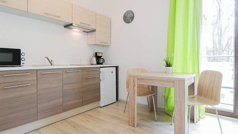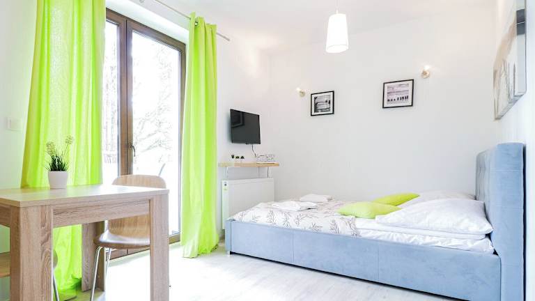 Die Ferienwohnung verfügt über ein Schlafzimmer, einen Flachbild-TV mit Kabelkanälen sowie eine gut ausgestattete Küchenzeile mit Kühlschrank und Mikrowelle. Ein Badezimmer mit Dusche ist ebenfalls vorhanden. Handtücher und Bettwäsche werden bereitgestellt. Die Unterkunft bietet Nichtraucherzimmer und ist für Haustiere auf Anfrage zugänglich.