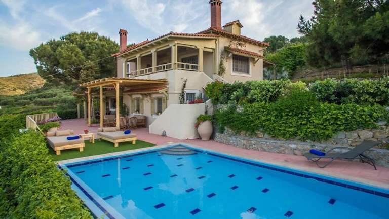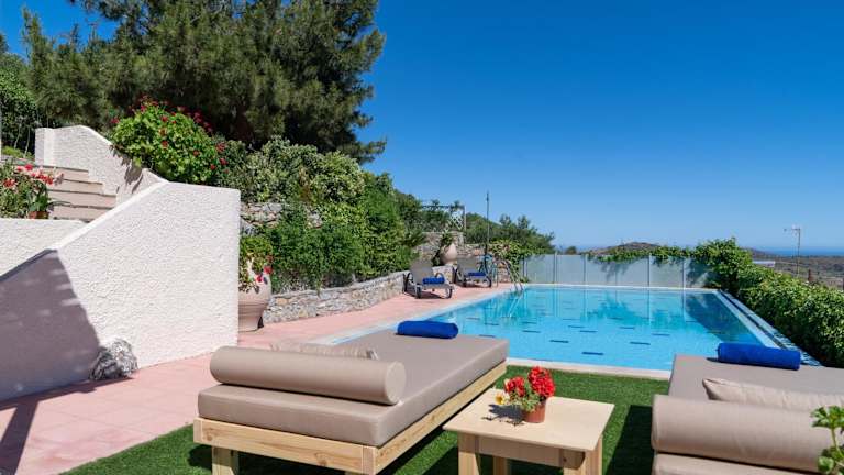 Die Villa Kalo Chorio erstreckt sich über zwei Etagen und verfügt über drei separate Schlafzimmer. Jede Ebene bietet Zugang zu einer möblierten Terrasse oder einem Balkon, von denen aus Sie die atemberaubende Aussicht genießen können. Das Wohnzimmer ist gemütlich eingerichtet und verfügt über bequeme Sofas und einen Flachbild-Sat-TV. Die voll ausgestattete Küche verfügt über einen Essbereich und einen Backofen mit Kochfeldern. Eine Waschmaschine steht Ihnen ebenfalls zur Verfügung.