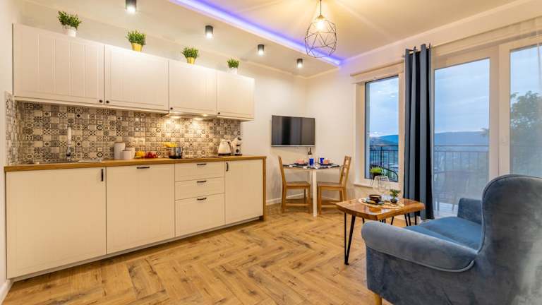 Die Villa Kasztelan bietet komfortable Apartments mit gut ausgestatteten Küchen, in denen Gäste ihre eigenen Mahlzeiten zubereiten können. Jede Wohneinheit verfügt über einen Essbereich und einen gemütlichen Sitzbereich mit einem Flachbild-TV. Das eigene Badezimmer ist mit einer Dusche und einem Haartrockner ausgestattet. Zusätzliche Annehmlichkeiten wie ein Kühlschrank, ein Kochfeld, ein Wasserkocher und eine Kaffeemaschine sind ebenfalls vorhanden. Die meisten Unterkünfte verfügen auch über einen Balkon, von dem aus die Gäste die schöne Aussicht auf die Umgebung genießen können.