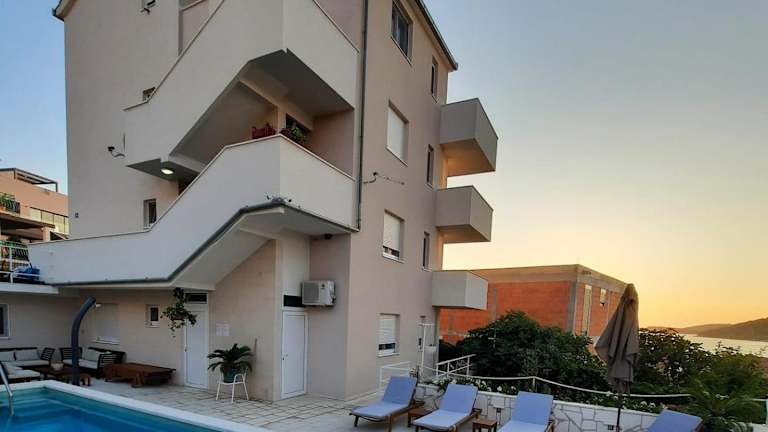 Die Villa Kata Razanj in Ražanj bietet Ihnen einen traumhaften Meerblick, einen saisonalen Außenpool und zahlreiche Freizeitaktivitäten wie Tischtennis, Wandern und Schnorcheln. Die klimatisierten Apartments verfügen über eine voll ausgestattete Küche und kostenfreies WLAN. Das freundliche Personal und die Nähe zu den Stränden machen diese Unterkunft zu einem idealen Ort für einen entspannten Urlaub.