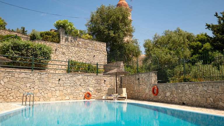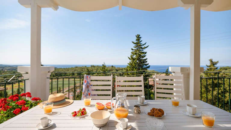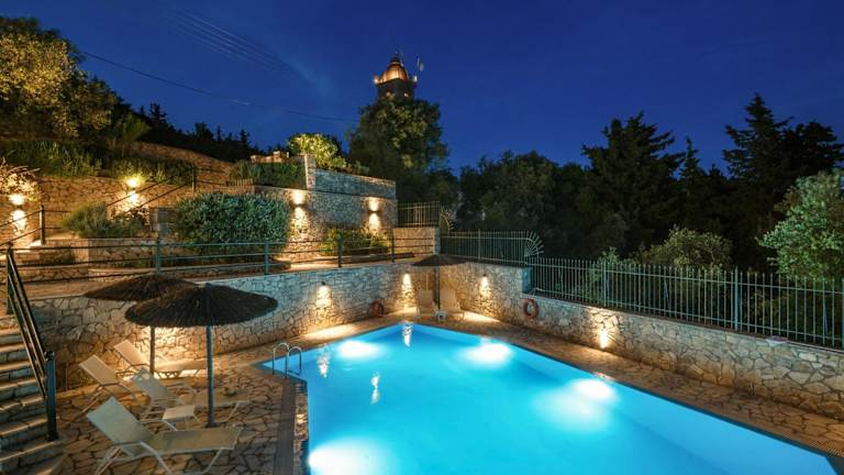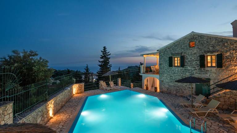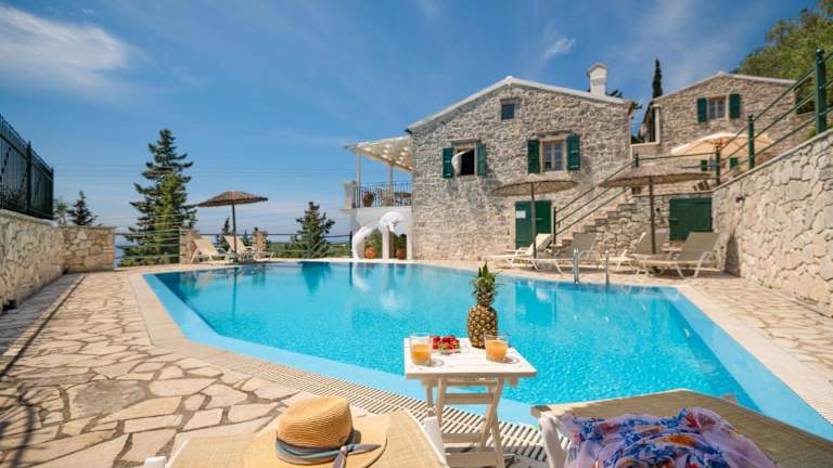 Entspannen Sie am eigenen Pool der Villa Katerini und genießen Sie die Sonne auf den Sonnenliegen. Der große Balkon bietet zudem einen herrlichen Blick auf das Ionische Meer. Nutzen Sie die Grillmöglichkeiten auf der Terrasse und speisen Sie im Freien.