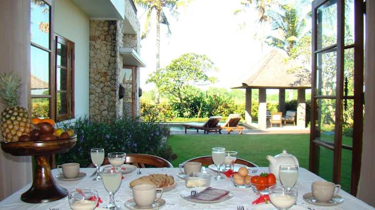 Die Villa Kawan verfügt über 3 klimatisierte Schlafzimmer, die alle mit einem eigenen Bad ausgestattet sind. Zusätzlich gibt es ein Einzelzimmer mit einem Ventilator, das speziell für das Personal eingerichtet ist. Jedes Zimmer bietet einen herrlichen Blick auf den Garten, die Reisfelder oder seitliche Ausblicke auf den Indischen Ozean. Die Villa verfügt über eine voll ausgestattete Küche, ein Esszimmer und ein geräumiges Wohnzimmer, in dem Sie sich entspannen können.