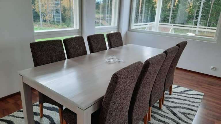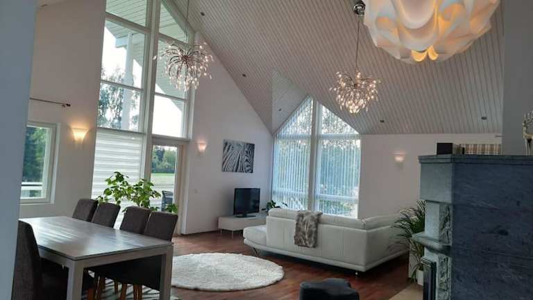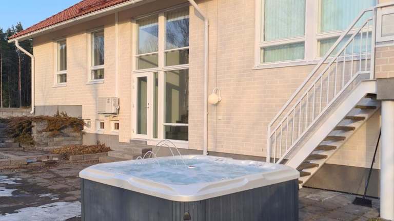 Die Villa Kilpäkki verfügt über 4 komfortable Schlafzimmer, die Platz für eine größere Gruppe bieten. Das Wohnzimmer ist gemütlich eingerichtet und lädt zum Entspannen ein. Die voll ausgestattete Küche bietet alles, was Sie für die Zubereitung Ihrer eigenen Mahlzeiten benötigen, einschließlich eines Kühlschranks und einer Kaffeemaschine. In den 4 Badezimmern finden Sie ein Bidet und eine Dusche. Handtücher und Bettwäsche werden in der Villa gestellt, so dass Sie sich um nichts kümmern müssen.
