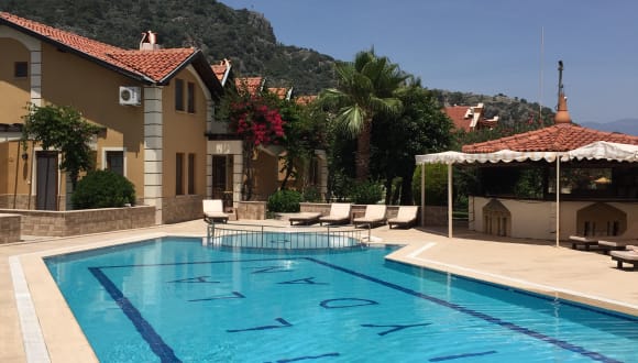 Villa Kiydan Wohnungen in dem malerischen Dorf Dalyan im Südwesten der Türkei. Dalyan liegt eingebettet am Ufer eines Flusses und ist von üppigen grünen Feldern und spektakulären Bergketten umgeben. Caunos Berg dominiert die Gegend, wie die in den Berg gehauen alten lykischen Felsengräber zu tun. Die Felsengräber sind nachts beleuchtet und berühmteste Merkmal Dalyan. Upstream, führt der Fluss zu einem schönen Süßwassersee (See Köyceğiz), wo Sie die lokalen Schlammbäder und heißen Quellen besuchen. Stromabwärts schlängelt sie durch einen Reed-gefüllten Dreieck auf das Meer und den berühmten Turtle Beach Naturschutzgebiet - die Heimat der geschützten Caretta Caretta Schildkröten. Insgesamt bietet Dalyan eine wunderbare Mischung aus Geschichte, Kultur, Küche, atemberaubende Ausblicke, Tierwelt, Wasser, Sand und Meer - alle Zutaten eines perfekten Urlaub! Unsere Wohnungen sind in der Nähe des Flusses im ruhigsten Teil von Dalyan. Es ist nur eine kurze 5-10 Minuten zu Fuß entlang der flachen, gut beleuchteten Straßen des Stadtzentrums, wo Sie alle lokalen Annehmlichkeiten, die Sie brauchen. Es gibt zahlreiche Bars und Restaurants mit tradtional türkische Küche sowie eine gute Auswahl an Supermärkten, ein Postamt und eine Bank. Es gibt einen regelmäßigen öffentlicher Schiffsverkehr von der Stadt zum Strand. Dieser nimmt auch die Passagiere in der Nähe von Villa Kiydan falls erforderlich. Alternativ können Sie einen Dolmus öffentlichen Minibus zum Strand vom Stadtzentrum entfernt auf einem wunderschön landschaftlich schöne Strecke durch einige der Berge in der Nähe der Bucht zu nehmen. Unsere nächste Flughafen ist Dalaman International, die Flüge von einer Vielzahl von Flughäfen Griffe und hat regelmäßige Ankünfte in der gesamten Hauptsaison im Sommer. Unsere Preise beinhalten einen Flughafen begrüßen Service und kostenlose Flughafentransfers und da Dalyan ist nur eine kurze 25 Minuten Fahrt vom Flughafen entfernt, werden Sie sehr schnell zu finden Sie sich in Ihrer Wohnung und entspannenden neben unserem privaten Pool angesiedelt.