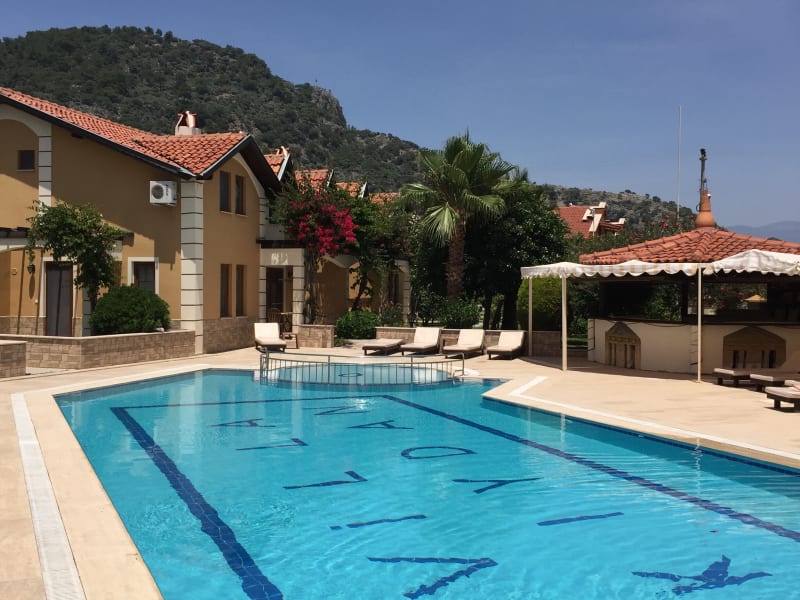 "Die Vılla Kiydan liegt Paradiesisch schön im Naturschutzgebiet Von Dalyan." Nur 20 Km entfernt vom Flughafen Dalaman. Dıe Anlage liegt sehr schön und nur 5 mıin.zu Fuß vom Zentrum entfernt. Die Anlage besteht aus 6 App. für 2-4 Personen und 6 App. für 4- 6 Personen. Jedes App. hat ein Wohnzimmer und ein bezıezieungsweise 2 Schlafzimmer eine voll eingerichtete und komplett ausgestattete Küche sowie ein sehr schönes und modernes Badezimmer. Alle App. haben zugang und Sicht auf den 130 qm grossen Schwimmingpool mit eingebautem grossen Whirlpool und gesichertem Kinderbecken. Alle Appartements haben ein sehr schönes Ambıente und sind mit Klimaanlage allen Deutschen TV Programmen Telefon Kabellosen İnternet-Anschluss sowie eınem Kühlschrank ausgestattet. Neben der Anlage ist ein für 10 Fahrzeuge Überdachter Parkplatz. Die Villa Kiydan liegt ca. 50m vom Dalyan Fluss entfernt mıt einer schönen Aussicht auf die Fesengraeber sowie einen Privaten Zugang zum Bootsanlege und Badesteeg.am Fluss. Dıe Villa Kiydan hat ein eigenes Schiff für Touren ans Meer oder zum nahegelegenen Köyceğiz See. Auch ein neuer Klimatisıerter VW Bus für 9 Personen für Ausflüge in die Naehere oder auch Fernere Umgebung steht den Gaesten zur verfügung.Weıtere Auskünfte bekommen Sie an der Recption. Die Besitzer der Appertement-Anlage Mahmut und sein Bruder Onur Kiydan sind dıe Jüngsten Manager von Dalyan und wollen frischen Wind mit İhrer im April 2007 neu eröffneten Apertement Anlage bringen.