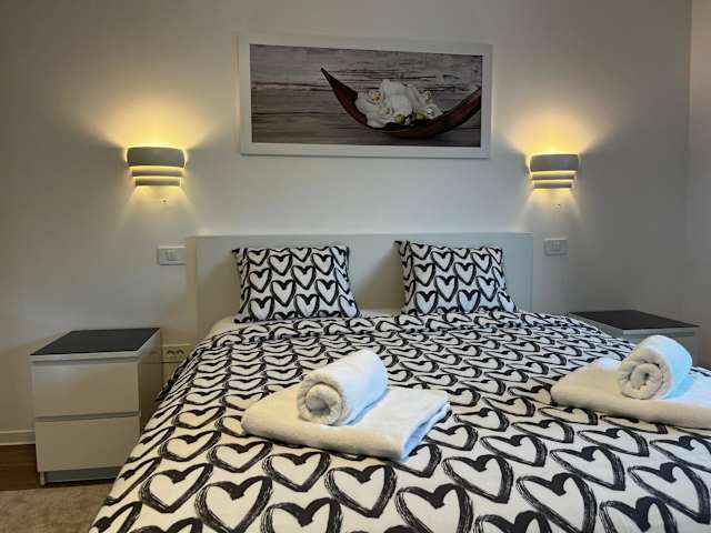 Die Ferienwohnung umfasst 3 Schlafzimmer und 1 Badezimmer. Das Badezimmer ist ausgestattet mit einem Bidet, einer Dusche und kostenlosen Pflegeprodukten. Die Küche verfügt über einen Kühlschrank, einen Geschirrspüler, einen Ofen sowie eine Kaffeemaschine und einen Wasserkocher. Die Unterkunft ist klimatisiert und bietet Nichtraucherzimmer sowie Familienzimmer.