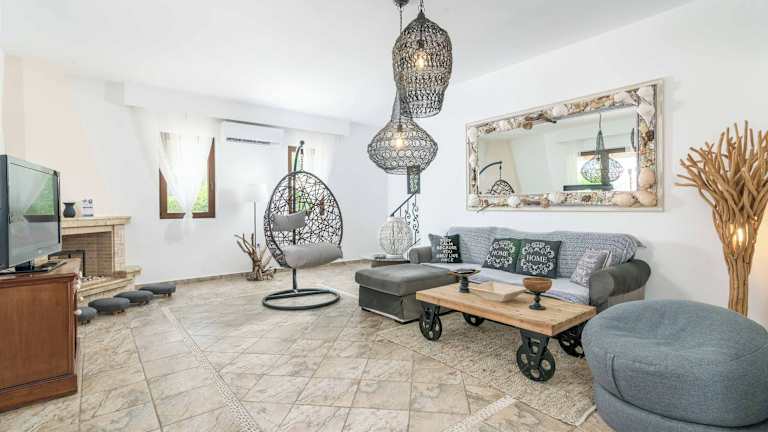 In der Villa Krini Panos können Sie Tischtennis spielen und sich im eigenen Pool erfrischen. Die Umgebung bietet auch viele Möglichkeiten für sportliche Aktivitäten wie Wandern, Radfahren und Wassersport am nahegelegenen Strand. Erkunden Sie die Umgebung und entdecken Sie die Schönheit von Vlicha und der Umgebung.