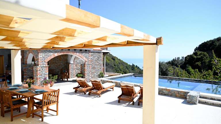 Die Villa Krio Pigadi ist eine Unterkunft mit einem saisonalen Außenpool, einem Garten und einer Terrasse. Sie bietet kostenlose WLAN-Nutzung und beeindruckenden Meerblick sowie Zugang zu einem eigenen Pool und kostenlosem Privatparkplatz.