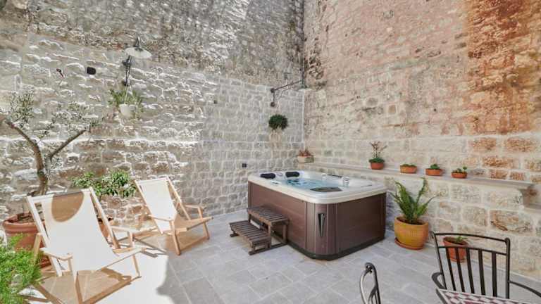 Die Villa Kudelik - Stone Story in Trogir ist eine ideale Unterkunft für einen entspannten Urlaub. Sie liegt nur wenige Schritte vom Zentrum von Trogir und 1 km vom Strand entfernt. Die klimatisierten Zimmer sind stilvoll eingerichtet und verfügen über eine Veranda oder Terrasse. Das hauseigene Restaurant bietet eine Vielzahl von Speisen und der Whirlpool lädt zum Entspannen ein. Ein Fahrradverleih und eine Autovermietung sind ebenfalls verfügbar.