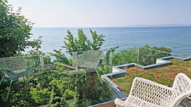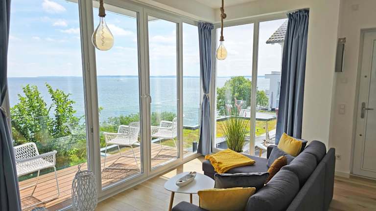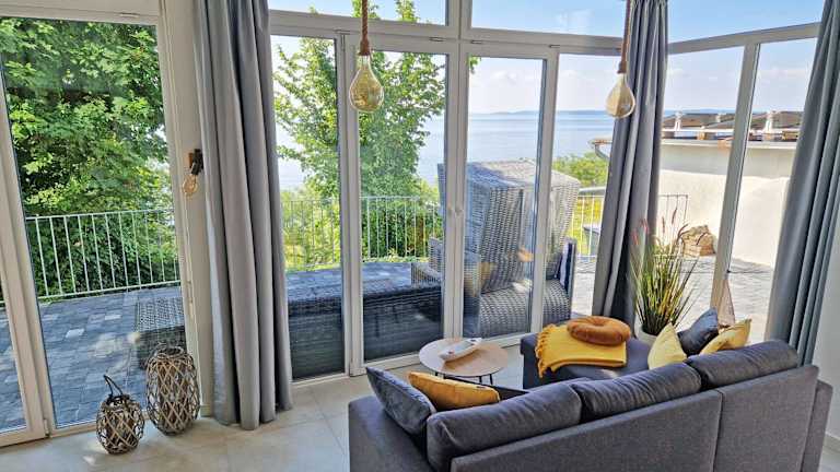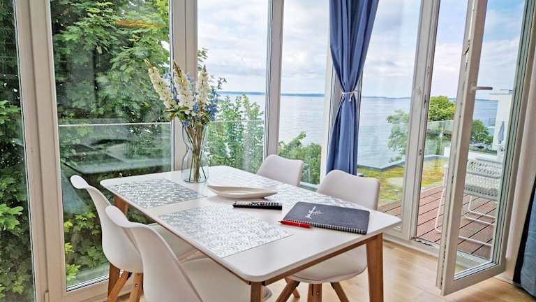 Die Appartements sind mit einer Küchenzeile ausgestattet, die einen Kühlschrank, einen Geschirrspüler und einen Ofen umfasst. Einige Wohneinheiten bieten zusätzlich eine Terrasse oder einen Balkon mit Ausblick auf das Meer oder den See.