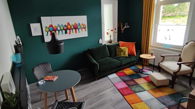 Die Villa Kunterbunt ist eine Ferienwohnung, die Gemütlichkeit am Waldesrand bietet. Die Unterkunft kombiniert modernen Komfort mit einer naturnahen Lage, ideal für Erholungssuchende.