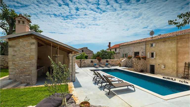 Die Unterkunft Villa Kurili No14 bietet Übernachtungsmöglichkeiten in einem Ferienhaus mit Klimaanlage und einem eigenen Pool. Die Unterkunft ist für bis zu 3 Schlafzimmer ausgelegt und ermöglicht den Gästen einen angenehmen Aufenthalt. Ein Whirlpool sowie Grillmöglichkeiten stehen ebenfalls zur Verfügung. Bei dieser Unterkunft handelt es sich um ein Nichtraucherhaus, in dem private sowie öffentliche Bereiche als Nichtraucherzonen ausgewiesen sind.
