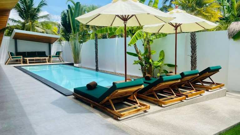 Die Villa Kurma, Modern & Tropical, 2BR, Near Fisherman Village in Bophut ist der perfekte Ort für einen entspannten Urlaub. Mit einem Außenpool und einem Conciergeservice können Sie hier die Ruhe genießen und sich von Anfang bis Ende umsorgt fühlen. Die Villa bietet alles, was Sie für einen angenehmen Aufenthalt benötigen, darunter klimatisierte Zimmer, eine voll ausgestattete Küche und eine Terrasse mit Poolblick. Die Lage ist ideal, in der Nähe des Fischerdorfs und nur wenige Kilometer von den Stränden entfernt.
