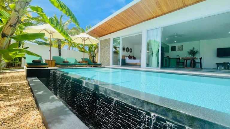 Die Villa Kurma bietet 2 Schlafzimmer und 2 Badezimmer, die perfekt für Familien oder Gruppen von Freunden geeignet sind. Die Zimmer sind klimatisiert und mit bequemen Betten und hochwertiger Bettwäsche ausgestattet. Handtücher werden ebenfalls zur Verfügung gestellt. In der Villa gibt es einen gemütlichen Essbereich und eine voll ausgestattete Küche, in der Sie Ihre eigenen Mahlzeiten zubereiten können. Auf der Terrasse können Sie den Poolblick genießen und sich entspannen.