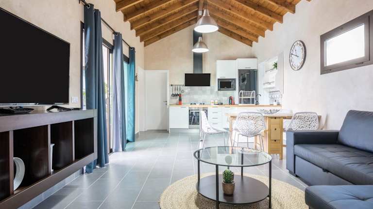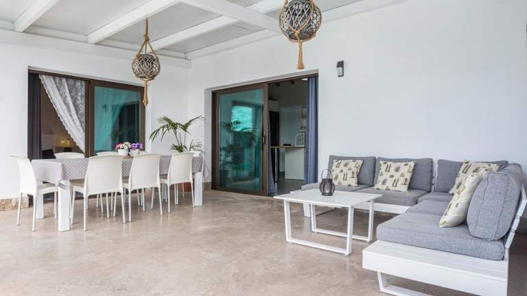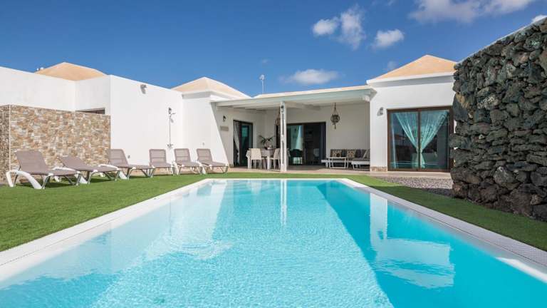 Die Villa verfügt über drei Schlafzimmer und ein Wohnzimmer, das mit einem Kabel-TV ausgestattet ist. Zudem gibt es eine voll ausgestattete Küche mit Kühlschrank und Geschirrspüler sowie zwei Badezimmer, die mit kostenlosen Pflegeprodukten versehen sind.