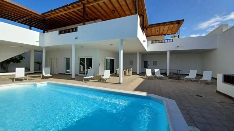 Die VILLA LANZAROTE bietet eine Unterkunft mit verschiedenen Annehmlichkeiten, darunter ein Außenpool, ein Garten und eine Gemeinschaftslounge. Die Villa umfasst 5 Schlafzimmer, ein Wohnzimmer und eine voll ausgestattete Küche. Gästen stehen zudem kostenloses WLAN und Meerblick zur Verfügung. Es handelt sich um eine Nichtraucherunterkunft mit klimatisierten Räumlichkeiten.